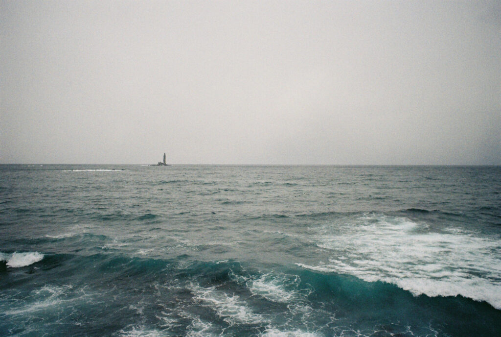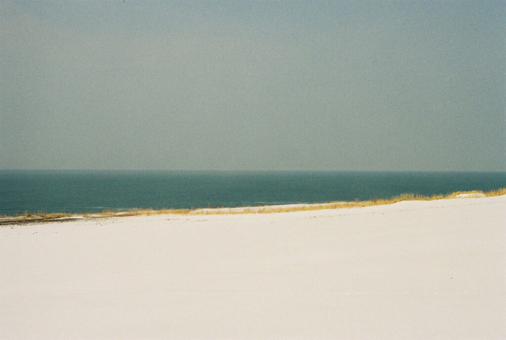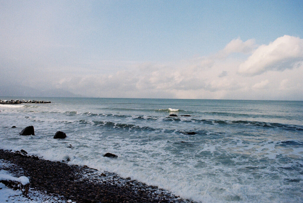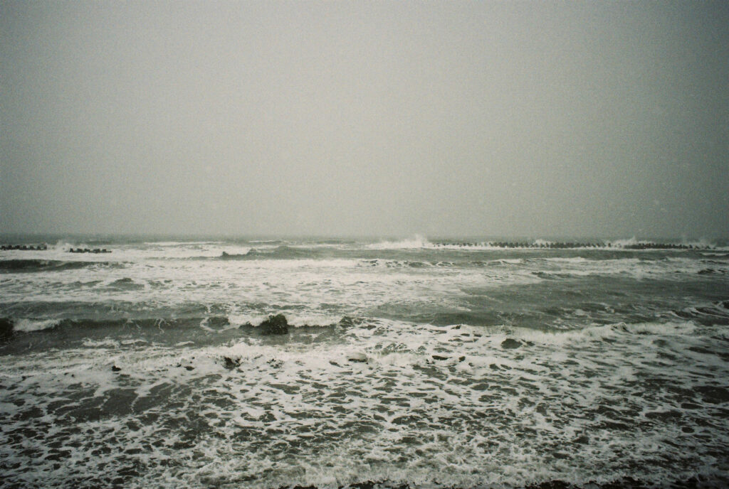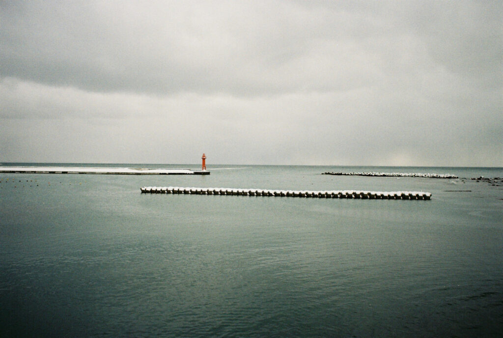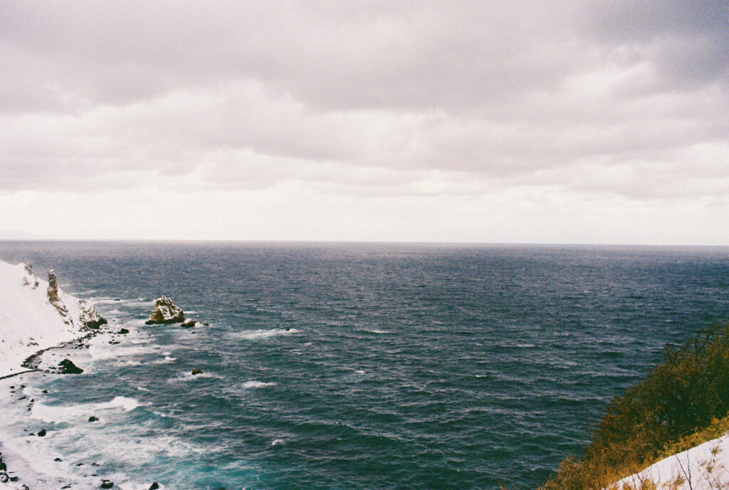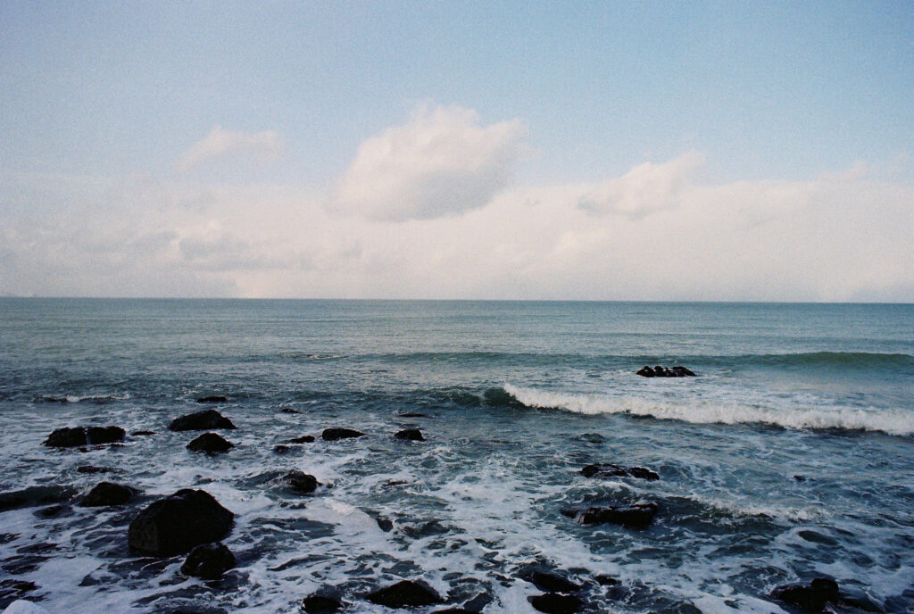 溶け合う空と海は人が引いた曖昧な一本の線のようです。