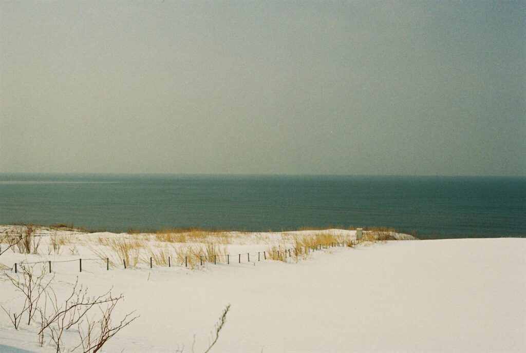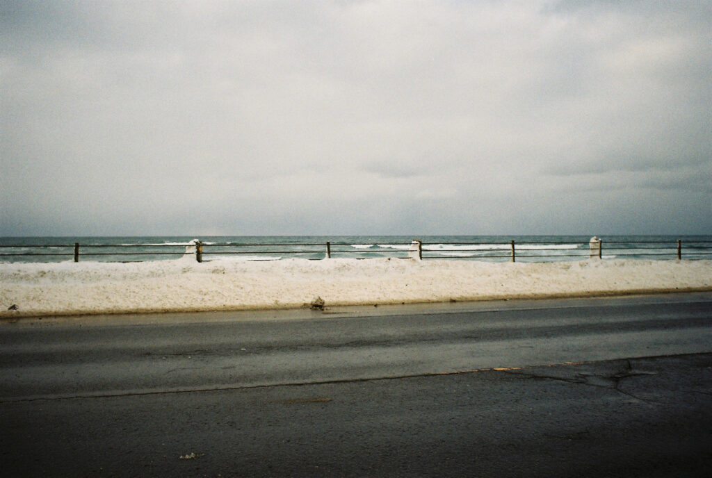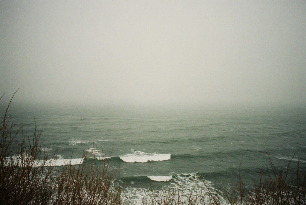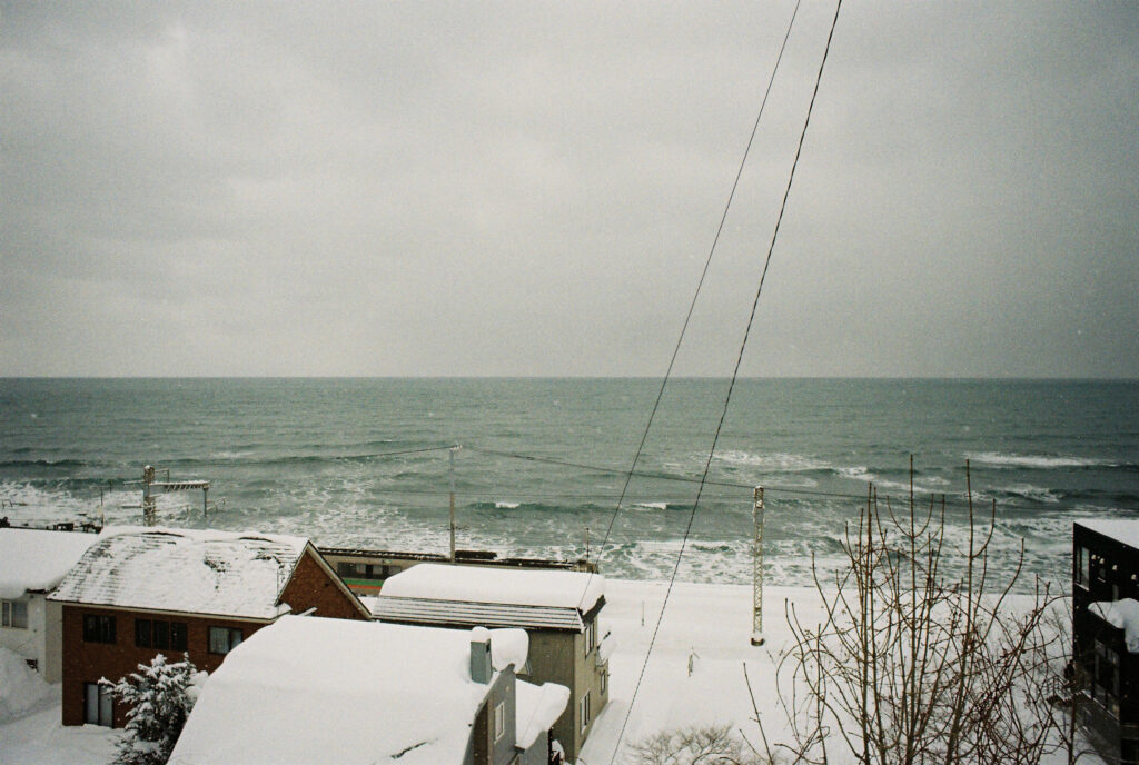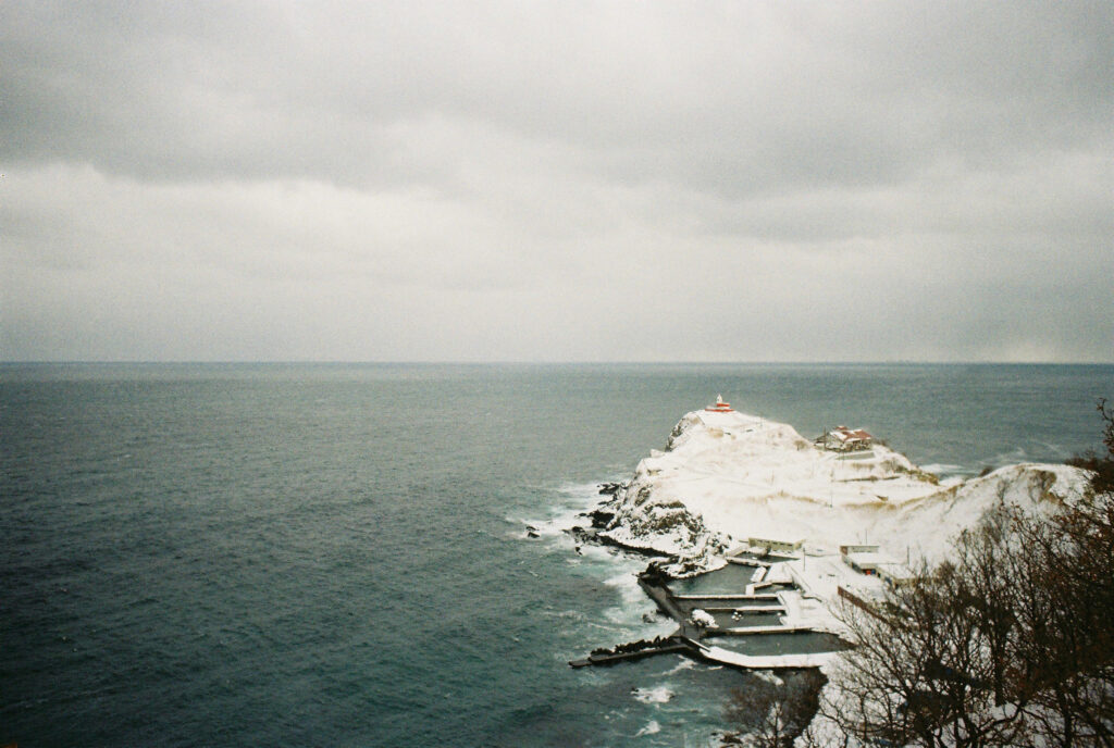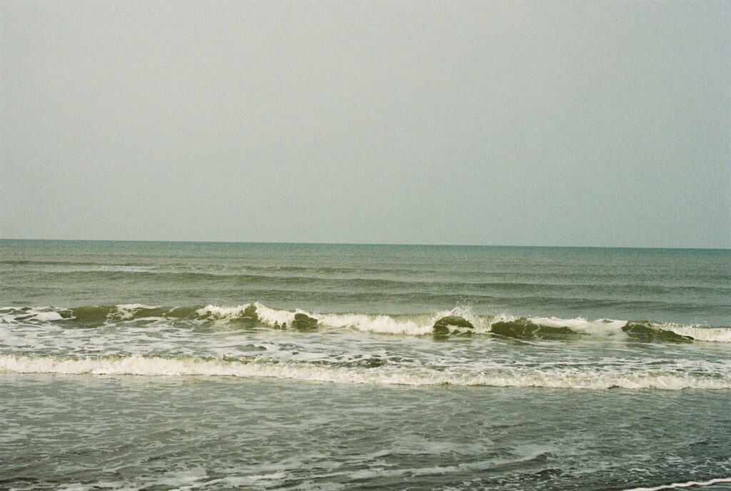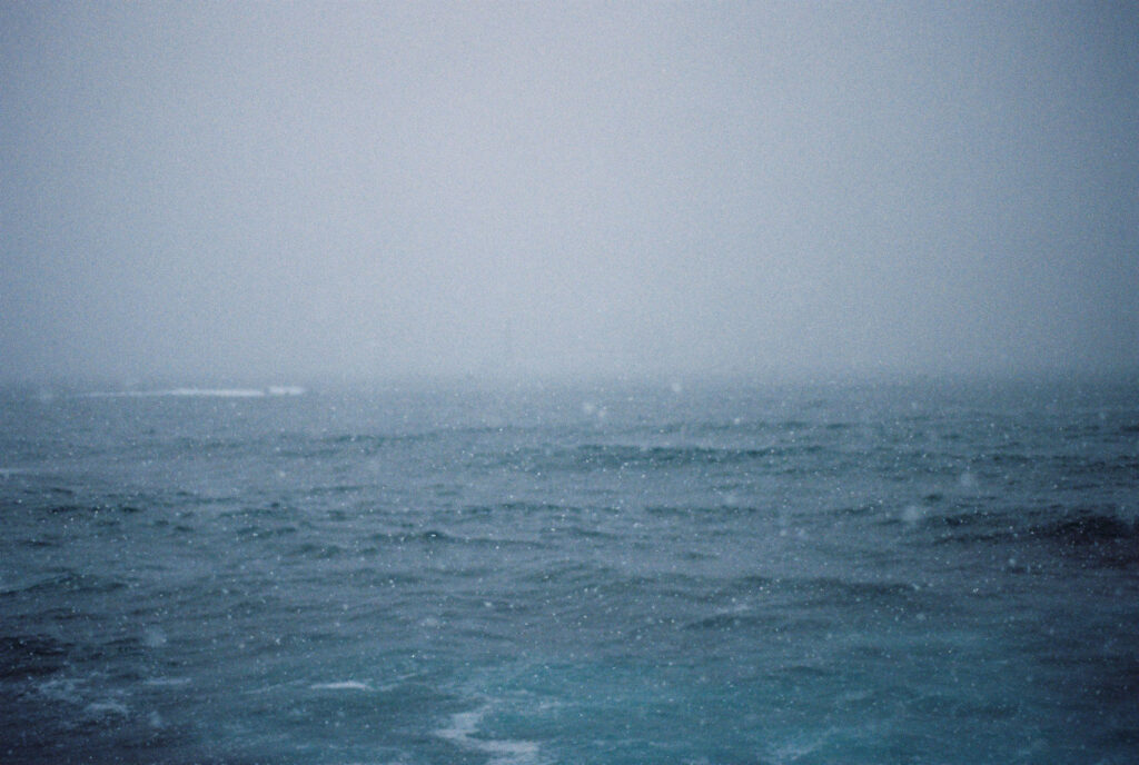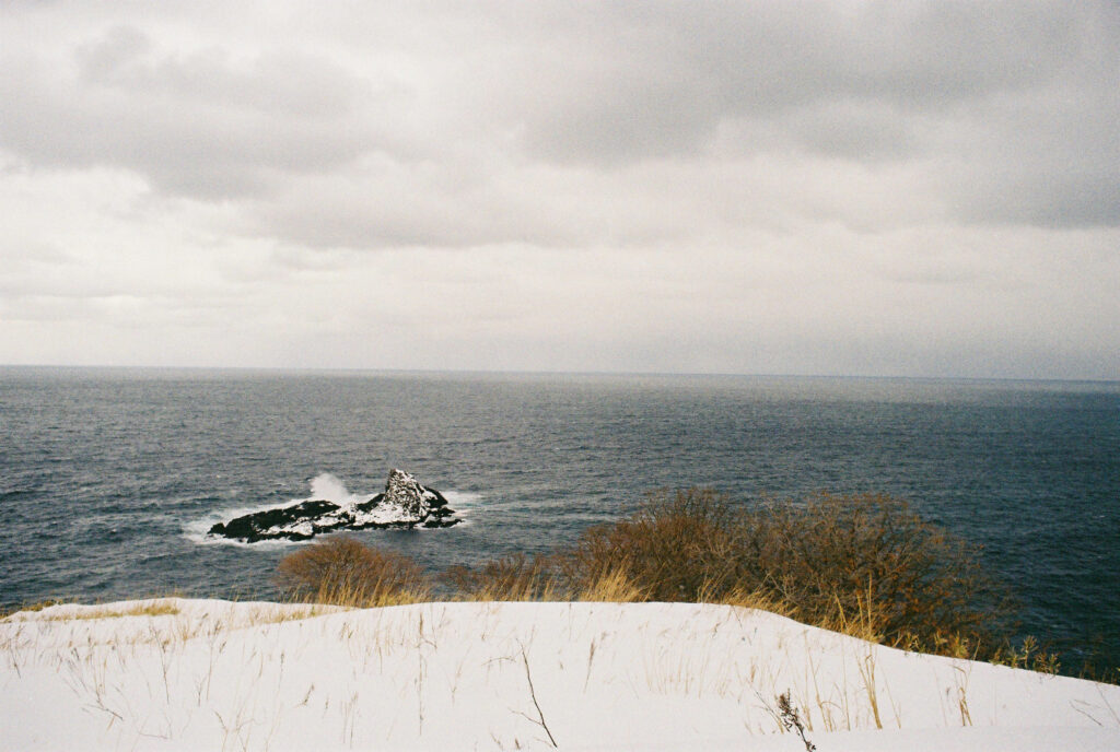 溶け合う空と海は人が引いた曖昧な一本の線のようです。